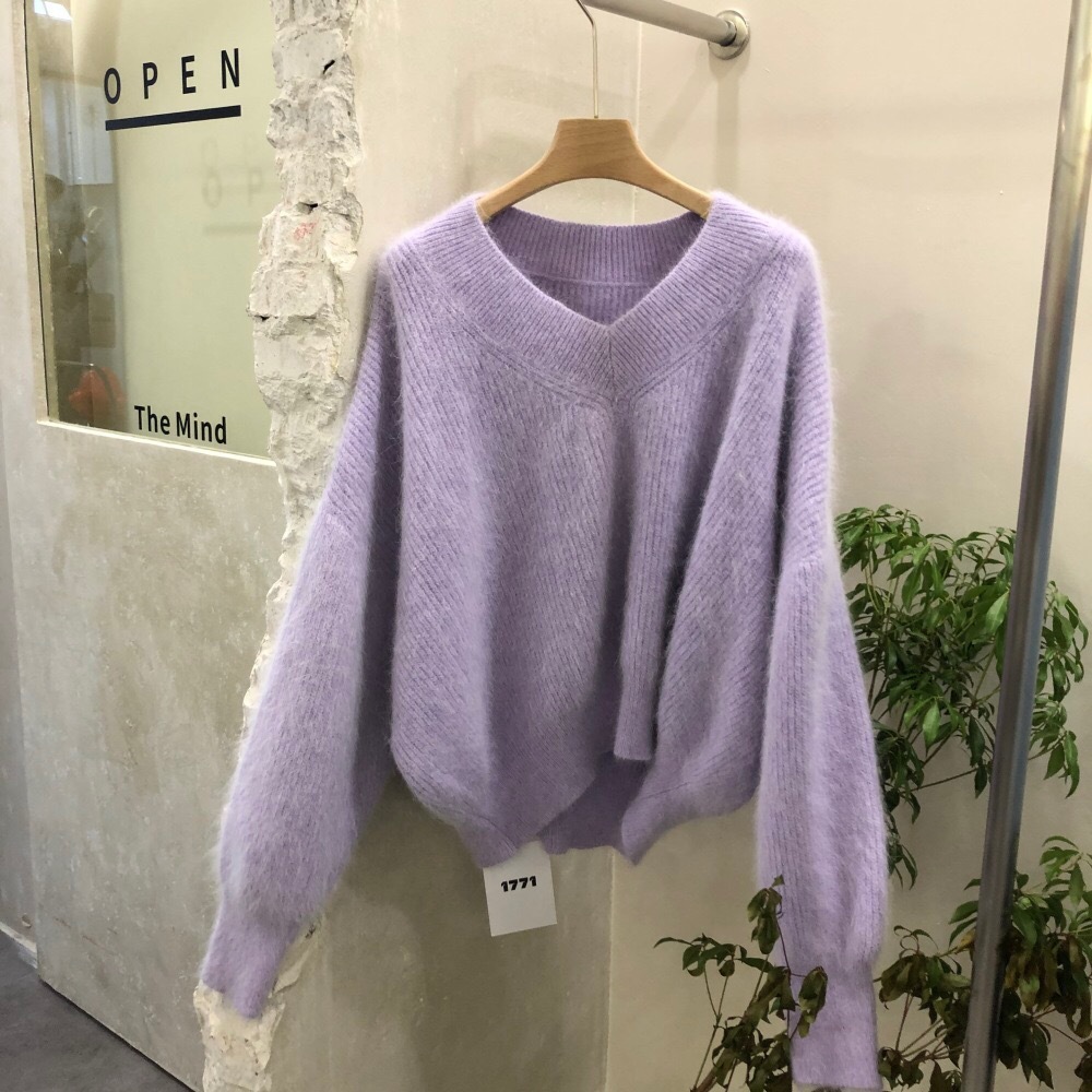 Western Style Lantern Sleeve Mink Wool Knit Sweater Women
